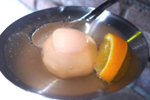 Explained Quaglia, “In our version, we make the aperol into a sorbet, using water. Then to serve it, we top it with prosecco wine. So it becomes a form of frozen spirit.” Also, a slice of orange was added as a form of decoration. When I tried this item, I thought the flavour was quite interesting. When the sorbet was scooped up together with the alcohol, the taste seemed to be slightly sweet, yet sour at the same time. In fact, this was a rather complex and intriguing taste, and this creative combination would definitely appeal to those who enjoy experimenting with alcohol and other flavours.
