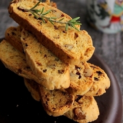 - Put the bread without oil into a large pan and heat it at a very low heat 80 degrees C. Also put rosemary leaf at the side of the pan to give the cooking an aromatic smell. Do not burn the bottom.