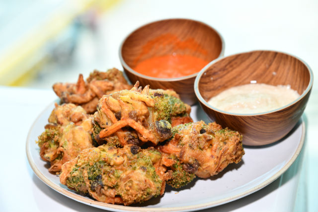 For the Cauliflower Almond Poppers, these had reminded me of a vegan version of spicy chicken nuggets. The deep-fried cauliflower inside tasted fairly mild on its own, with the seasoning that it had been fried with, giving it a hint of a spicy note. It was surprisingly delicious; I have to say that I didn’t know that cauliflower could taste so good.
