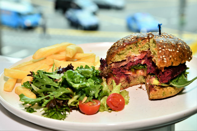 Due to its texture, I thought that the beetroot burger patty doesn’t really hold up very well and can get quite messy, falling apart on the plate, when eaten with a knife and fork.