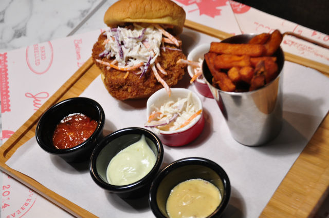 This consists of fresh lobster meat seasoned and breaded with various spices. The patty is deep fried to perfection, maintaining every drop of moisture and juiciness before being enveloped in a fluffy white bun.