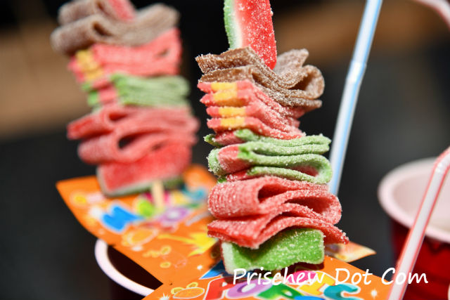 This consists of Ketel One Vodka, lychee liquor, cranberry and lime juice shaken with blueberry puree and topped with the Holey Moley candy kebab – the latter of which turned out to be a sour gummy candy ribbon twirled together with a sachet of popping candy.