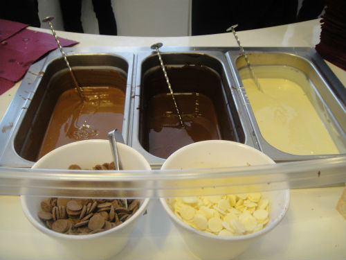Then you select the chocolate base (dark, milk or white) that you want, three toppings of your choice and finally, a chocolate drizzle (dark, milk or white).