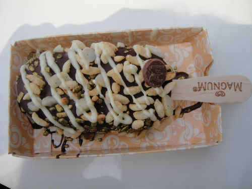 You first start with a plain vanilla Magnum ice cream with absolutely nothing on it.