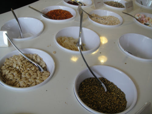 When it was finally my turn, I took a look at the toppings available. There was a wide variety, including coffee, caramel chips and sea salt as well as floral flavours such as rose petals.