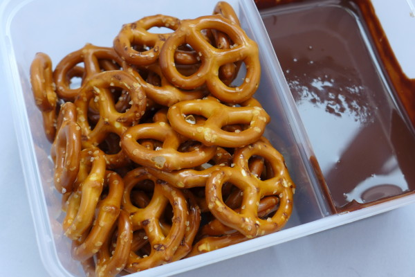 On why he came up with this product, Matt explained, “People keep telling us that our fudge is awesome and that it’ll be good to dip something into it, like Yan Yan or Pocky. But I felt that potato chips do not work – so we decided to get pretzels and use our fudge as a nice dipping sauce.”