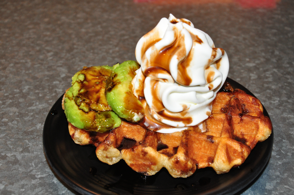 - Belgian Liege Waffle with Avocado, Gula Melaka Syrup and Sundae ($6.50)