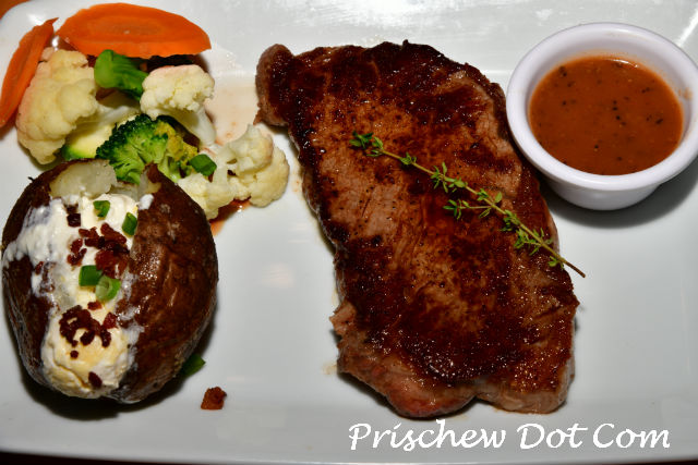 According to my companion, his Medium Rare New York Strip was “nice and juicy” and cooked just right, so he had really enjoyed eating his steak, and my Medium Well Ribeye was not tough or overcooked despite the done-ness – instead I had thought that it was still pretty soft and juicy, prepared just the way that I liked my steak.