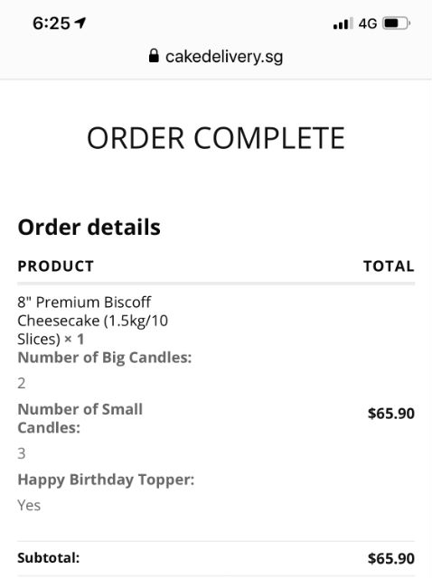 Adding a birthday topper as well as birthday candles to the order was also simple and this only required the click of a button.