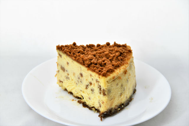 There had been a generous amount of cookies used in the preparation process of the cake. There was plenty of crushed biscoff cookies on the top of the cake that was used for decoration, as well as an ample amount of biscoff pieces mashed up inside the cake. And as well, the base is also made of cookie crumbs, similar to that of most cheesecakes. However the base did not appear to be biscoff cookies.
