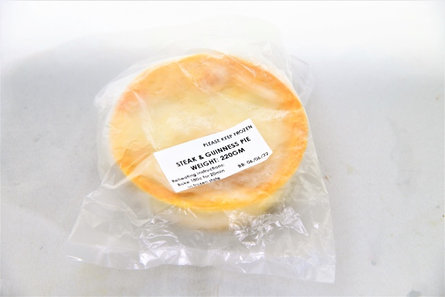 The Beef and Guinness pie is stuffed with tender chunks of prime ribeye steak swimming in a rich dark gravy.