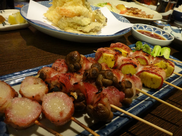 - A variety of Japanese Style Satay Sticks (Minced chicken, Bacon & omelet, Bacon & Enoki mushrooms, Mushrooms with prawn balls, Asparagus and Eggplants).