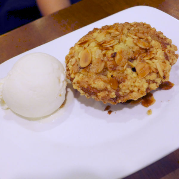 I’ll say that this cake totally blew my taste buds away. I’ll admit that I had been expecting a rich, Western-style fruitcake full of fruits and nuts, but this cake was so light and fluffy. At the same time, the pieces of apple and sour cherries baked into the cake added a really delicious flavour to the dessert. The cold, melt-in-your-mouth ice cream complemented the warm fruitcake really nicely, creating a scrumptious blend of textures in the mouth.