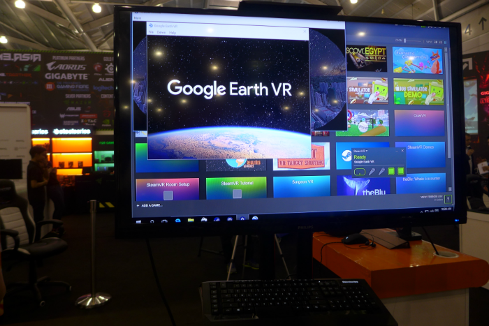 There is also a motion tracking VR experience; when you walk or move, your motion is tracked and you can also interact within the interface of the virtual world itself. This had looked really cool when we saw it during the media preview.