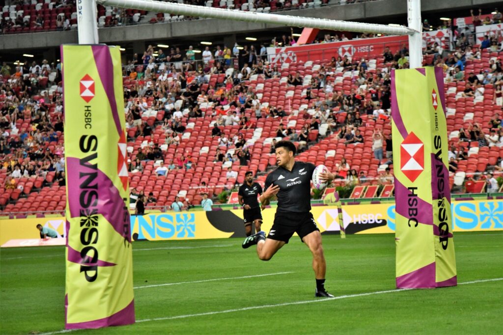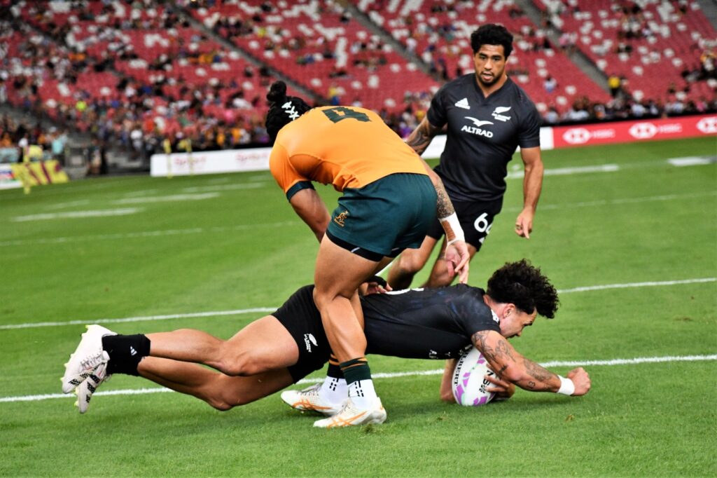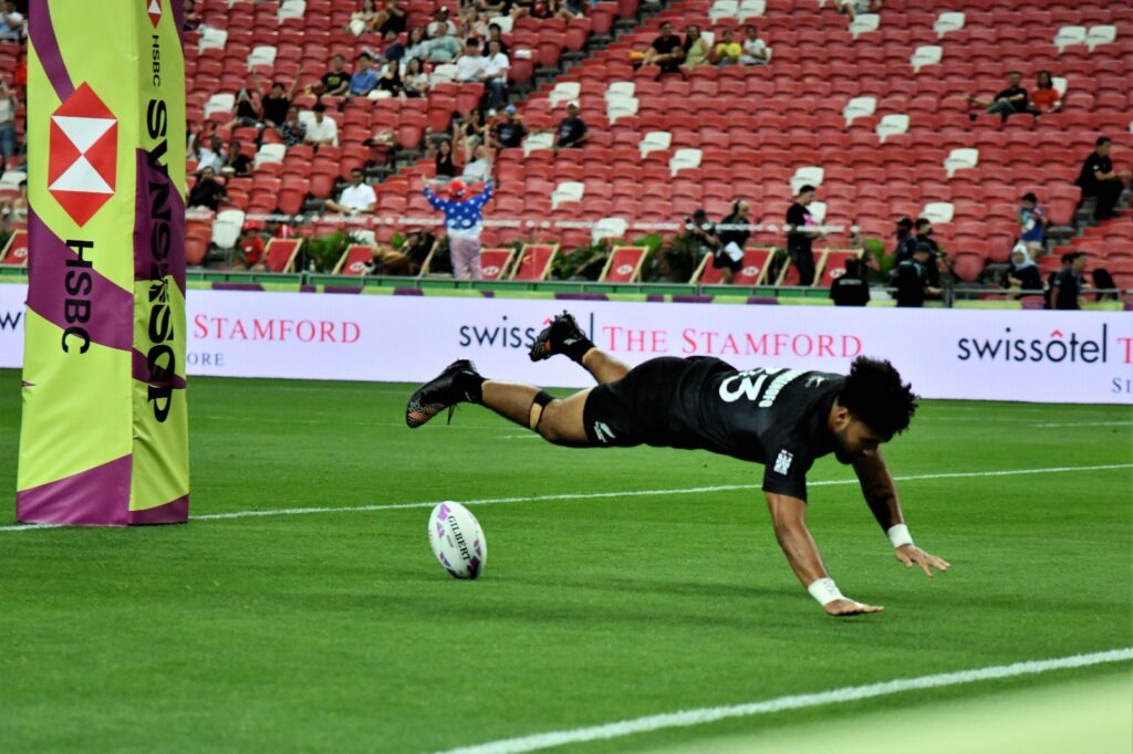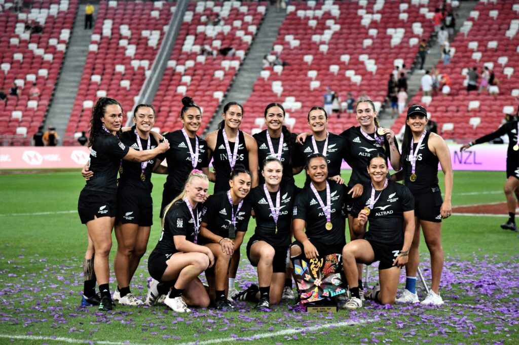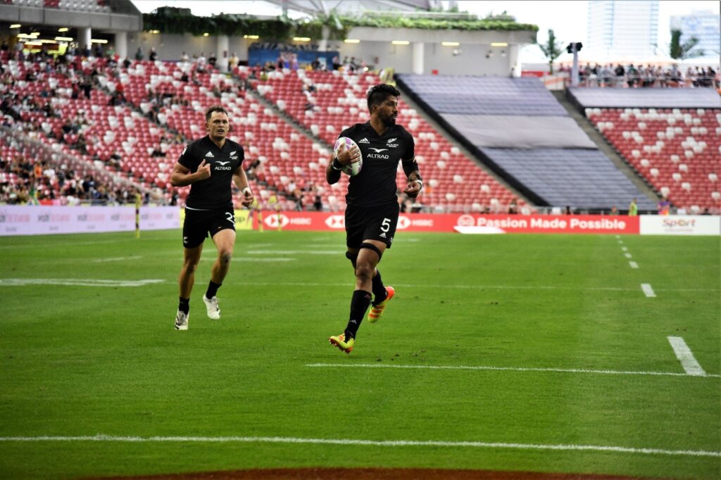 The Singapore men’s tournament was won by New Zealand who edged Ireland 17-14 in the men’s final to successfully defend their Singapore crown. This is also the All Blacks Sevens second consecutive gold, after their win in Hong Kong.