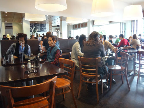 There is a good menu selection including all-day American set breakfast items, such as eggs benedict. As well, pasta dishes and sandwiches, cakes, muffins and a range of coffees and other non-caffeinated beverages are also available.