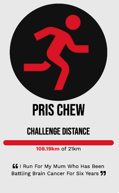 To give me the mental energy to keep on going, I had constantly reminded myself that I was doing this for Mum. If she can fight glioblastoma, then I can definitely complete a solo 21km run, no matter how hard it got along the way.