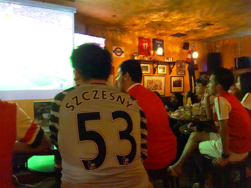Singaporean Gooners are watching the game intently.