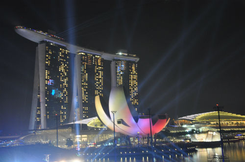 Marina Bay Sands, a prominent landmark of the Singapore city centre, which Peter may visit