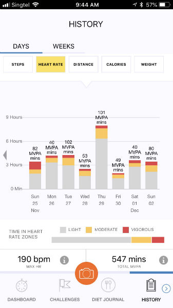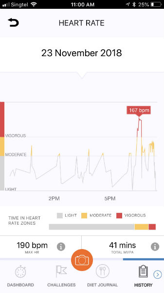 However, there were some moments when the heart rate had been in line with what I felt. For instance, one Tuesday evening, I ran on the slopes at the Botanic Gardens with my heart rate reaching 165 at the maximum. The AXTRO Fit tracker showed my maximum heart rate during my run as being 167.