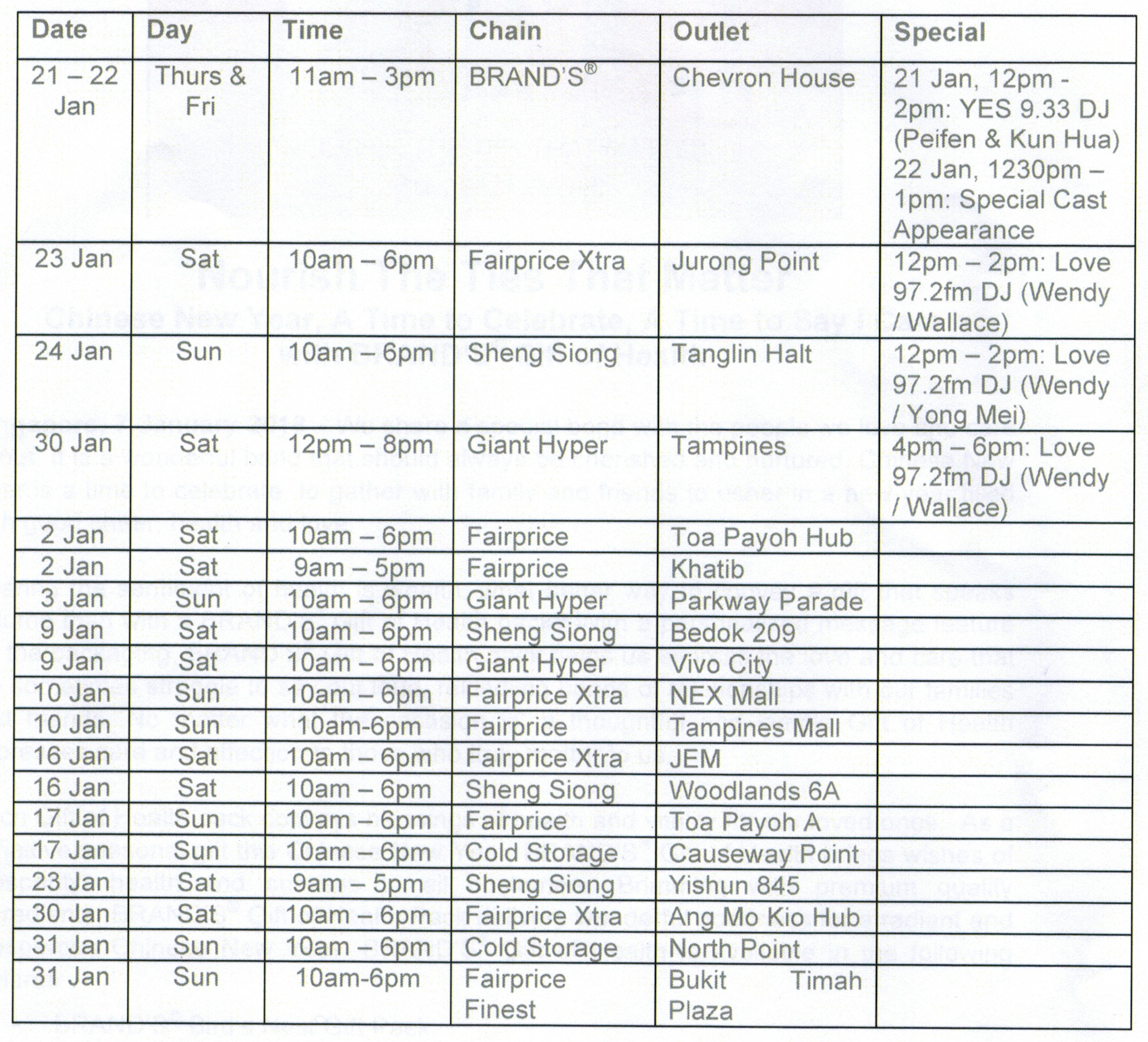 From now till 31 January 2015, BRAND’S® will be having a series of Road Shows across Singapore. Customers can take part in a sure-win lucky draw with every purchase of $28 spent on BRAND’S® Chinese New Year participating products at NTUC Fair Price, Giant and Sheng Siong. There is a total of $38,000 worth of prizes available.