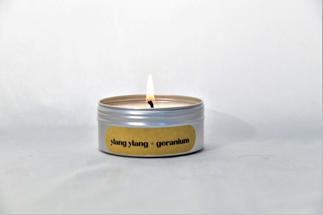 The Ylang Ylang + Geranium candle on the other hand, has a strong earthy scent as soon as the candle begins burning, with floral and fruity notes seeping into the air and lingering on as the candle burns.