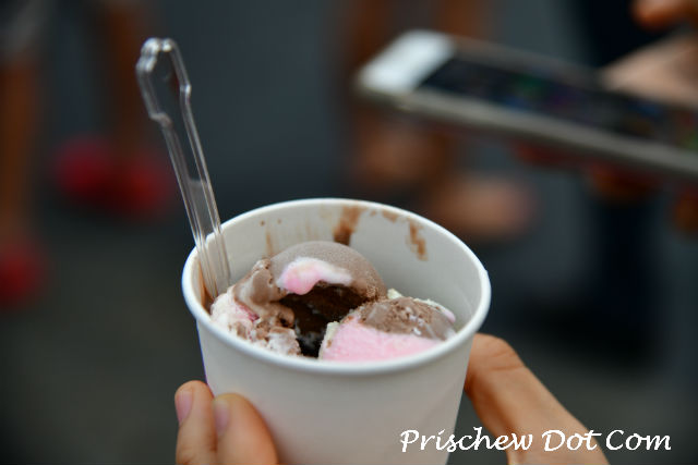 At the ArtBox, I thought there were some interesting types of food, and these had included rainbow cotton candy, charcoal ice cream wrapped with gold flakes and cartoon character shaped paos.