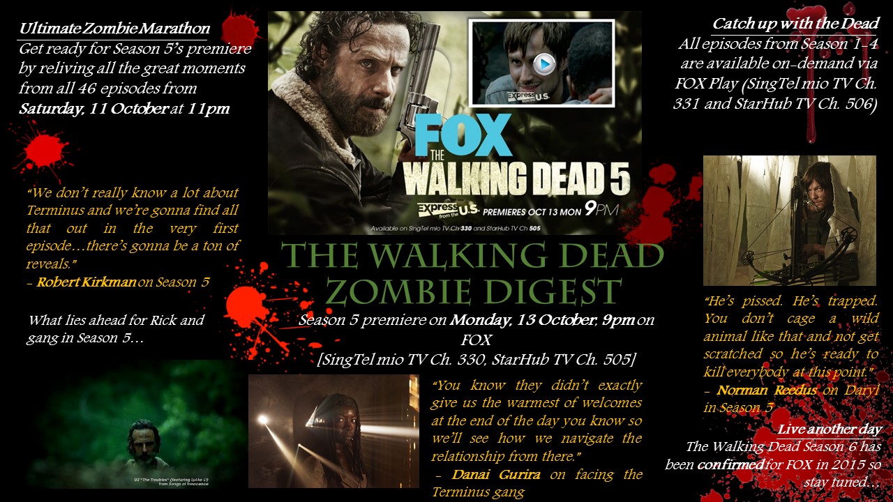 That’s because The Walking Dead returns to your TV screens with THE Ultimate Zombie Marathon – starting tomorrow. This will lead right up to the Season 5 Premier of The Walking Dead – on Monday, 13 October at 9.00pm.