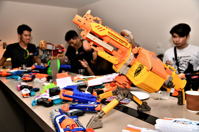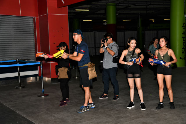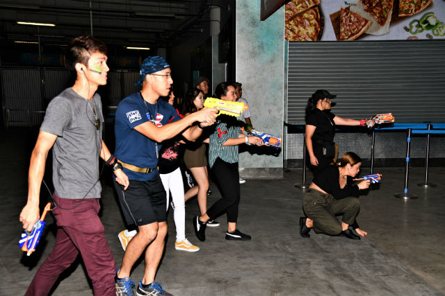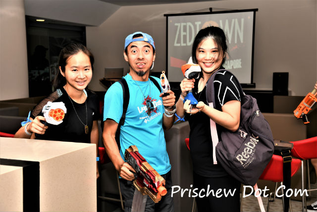 There are two different ways that we can ‘kill’ the zombies, with a Nerf blaster or with a pair of rolled-up socks. Because I did not bring any socks along with me, I ended up borrowing one of the nerf blasters thoughtfully provided by the Zedtown organisers.
