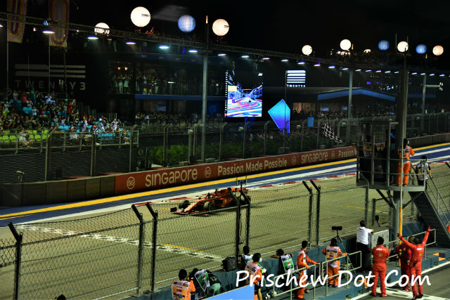 Also continued Vettel, “I knew that the races here in Singapore usually start very slow, and that Charles would take it easy to control the race, which he did. Back in the train, obviously it’s not so easy to stay close to the car in front, looking after your tyres, so that’s what I tried to do, to be able to stay with them as much as I could once they were picking up the pace.”