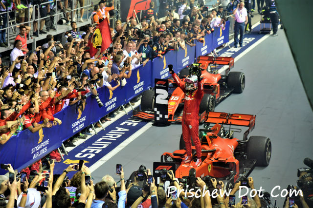 Leclerc finished in second place to make it a one-two for Ferrari, the first time that a team has done so in the history of the Singapore Grand Prix.