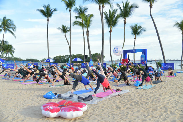 The event was anchored by two sundown yoga sessions – both hosted by prominent yogi and founder of The Yoga Lab, Jasmine Chong, and was set against the picturesque backdrop of Sentosa’s Siloso Beach, and saw the participation of about 200 people.