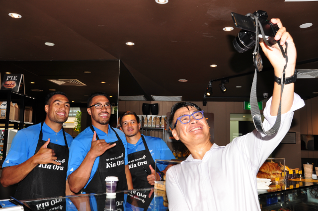 Those ordering the coffee also got the chance to line up outside the restaurant and were served by the three All Blacks Sevens stars. Many of the fans had seemed overwhelmed to come face to face with their idols, and they let their colours show, by wearing All Blacks jerseys or else bringing memorabilia such as rugby balls and scarves for the players to autograph. The players were also quite obliging, agreeing to every autograph and selfie request.