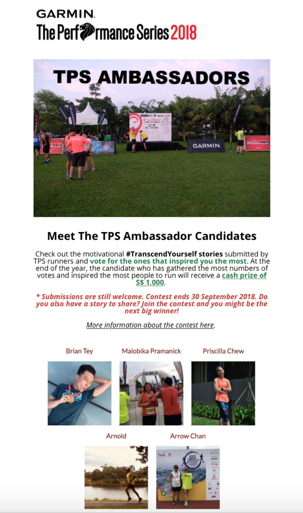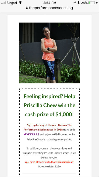 Readers who were inspired by our stories were encouraged to submit their votes. The candidate who had finished with the most votes and inspired the most people to run by the closing date of 30 September, would win the S$1,000 cash prize.