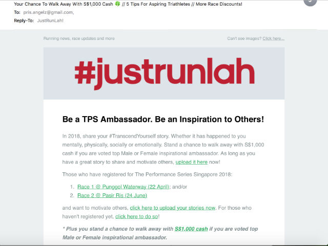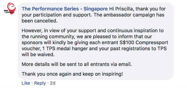 JustRunLah Cancelled The TPS Ambassadors Contest and withdrew cash prize after closing date