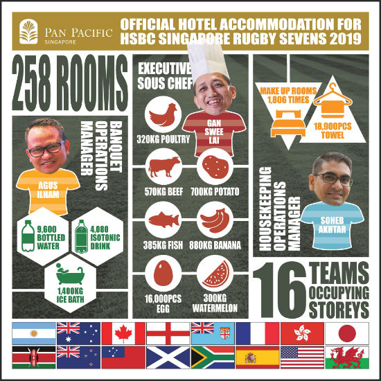 As the Official Hotel accommodation for the HSBC Singapore Rugby Sevens 2019, Pan Pacific Singapore recently welcomed the world’s top national teams from 16 countries including Argentina, Australia, England, Fiji, Japan, New Zealand, South Africa and Wales.