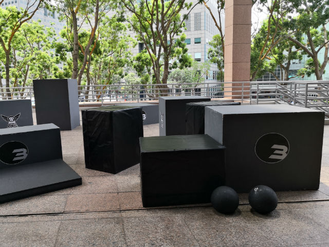 Foucan instructed us to get into groups of three or four people each, and each group would be assigned a certain area of the gym, for example, the stability balls, and we were supposed to come up with our own creative methods of utilising the gym equipment, before switching over to a new set of equipment. For example, climbing on top of the monkey bars instead of swinging on them.