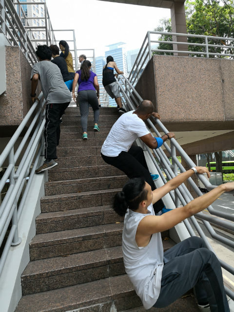 For Trekking, this is basically about moving from Point A to Point B and the essence of the art of parkour. And to begin with, Foucan had us form a long human train, and we had to simply watch and follow him as he moved from one point to another. He took us from the TripleFit gym premises and on a little merry-go-round around the surrounding area at Promenade.