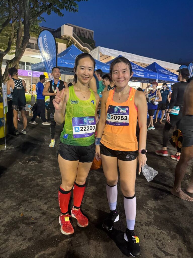 We received a race medal and finisher tee when we crossed the line, along with water, banana and Pocari.
