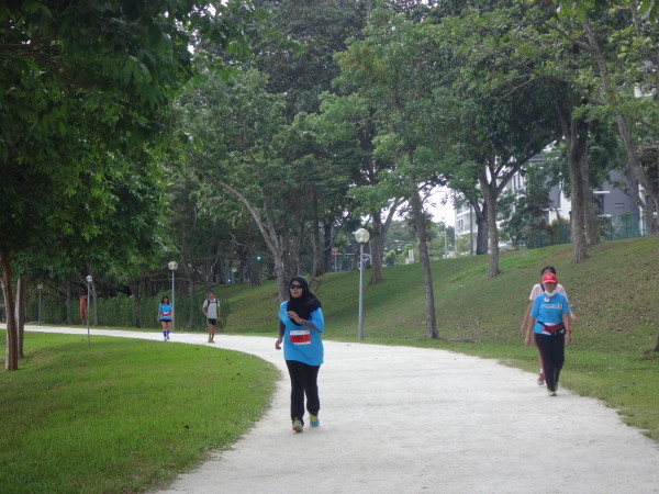 Runners braving the heat at Bedok Reservoir Park.