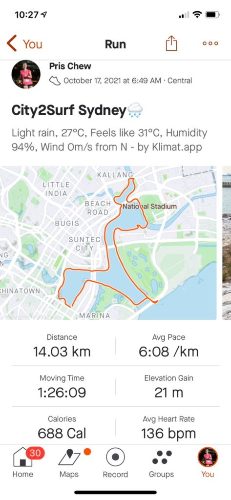 It had been a rather nice 14km morning run – though I definitely hope to be back in Sydney someday to run the actual route in the physical event.