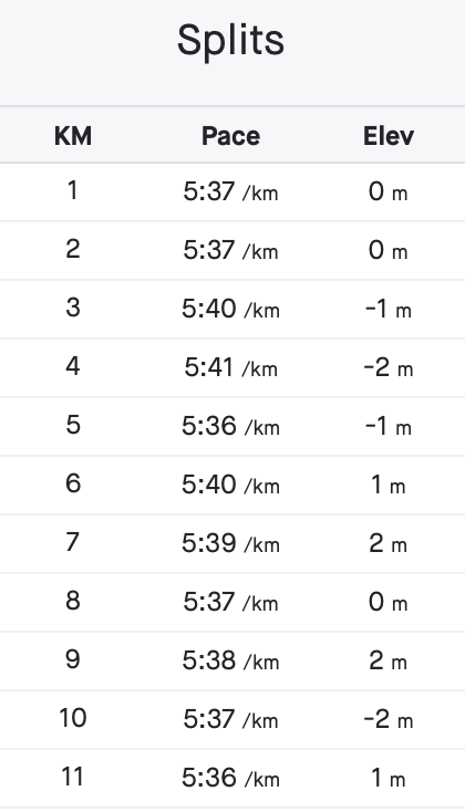 So I took off at a strong pace, aiming to run even splits of around 5:30-5:40 per kilometre.