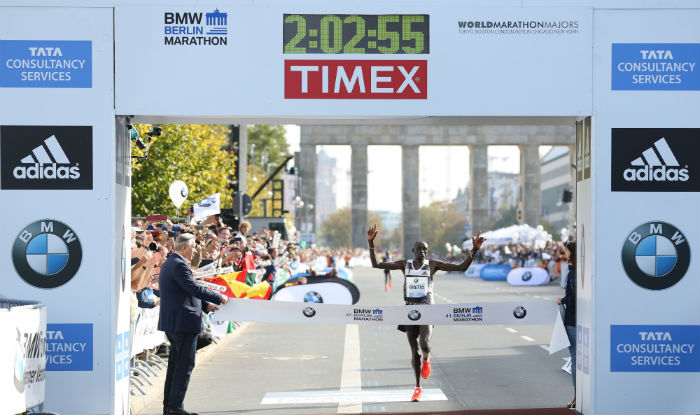 He had smashed the previous world record, set at the same race last year by fellow Kenyan marathoner Wilson Kispang, by a staggering 26 seconds at the same Berlin course. Kispang’s previous record had stood at two hours three minutes and 23 seconds.