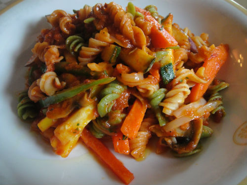 Pasta is one of the food that Mok eats.