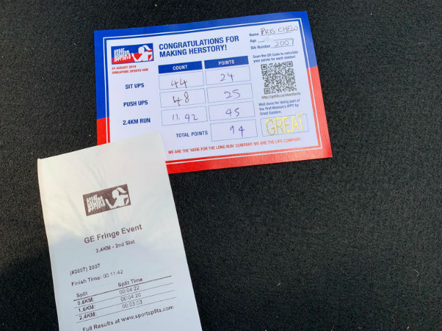 It would have been rather nice to receive a cash incentive like the NSmen get when they pass their IPPT – unfortunately that was not to be, though!