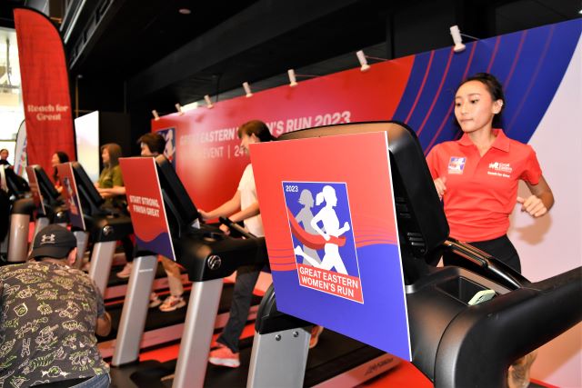To mark the opening of the event, Minister Low ran alongside representatives from Great Eastern, Daughters of Tomorrow, Singapore Cancer Society and national SEA Games runner Vanessa Lee on treadmills that had been brought in for this purpose.