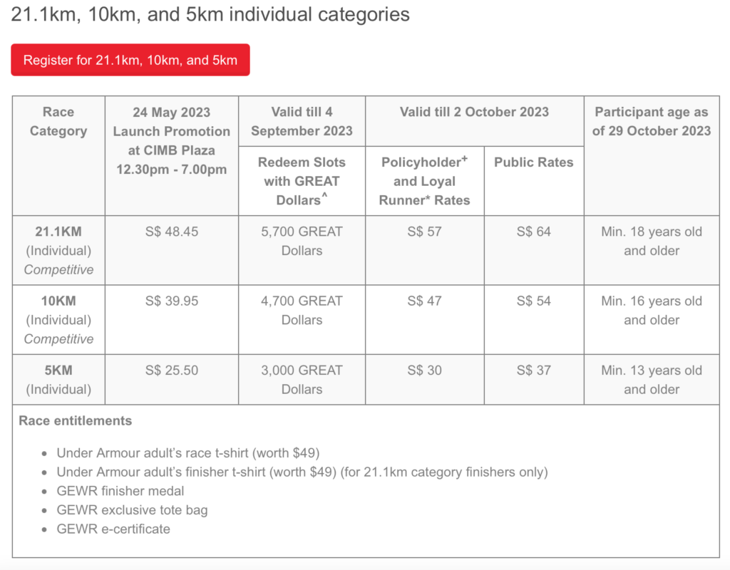 To sign up for the Great Eastern Women’s Run 2023, you can go to https://www.greateasternlife.com/greateasternwomensrun/index.html