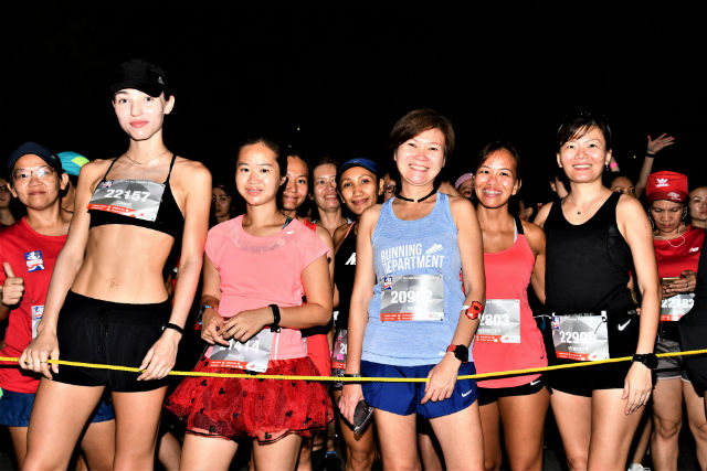 In the moments leading up to the race flag-off, I noticed that the overhead bridge above Nicoll Highway was lined with supporters. These were mainly the male partners of the ladies who were running in the race and the two emcees acknowledged their presence.