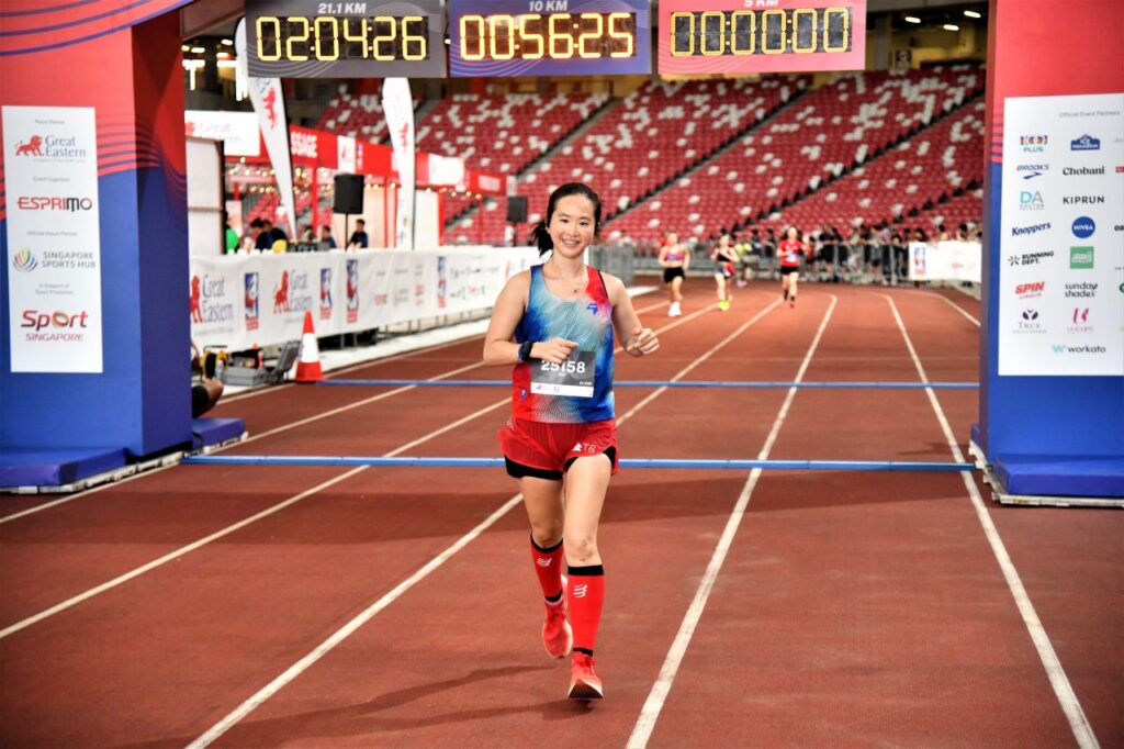 The most challenging part of the run was the last 1.5 kilometre running into the Sports hub. The finish line was inside the stadium but the last stretch felt like it was never-ending. At least there were a lot of photographers and cheerleaders along this stretch, comprising of members from local running groups, and this helped to give me the lift that I needed.