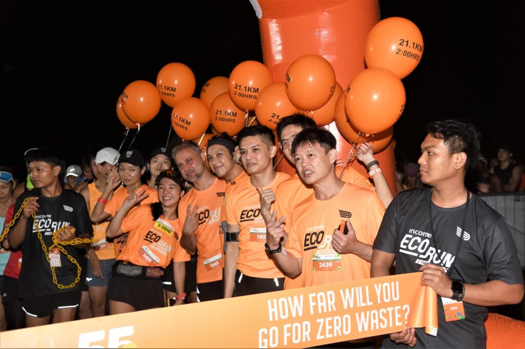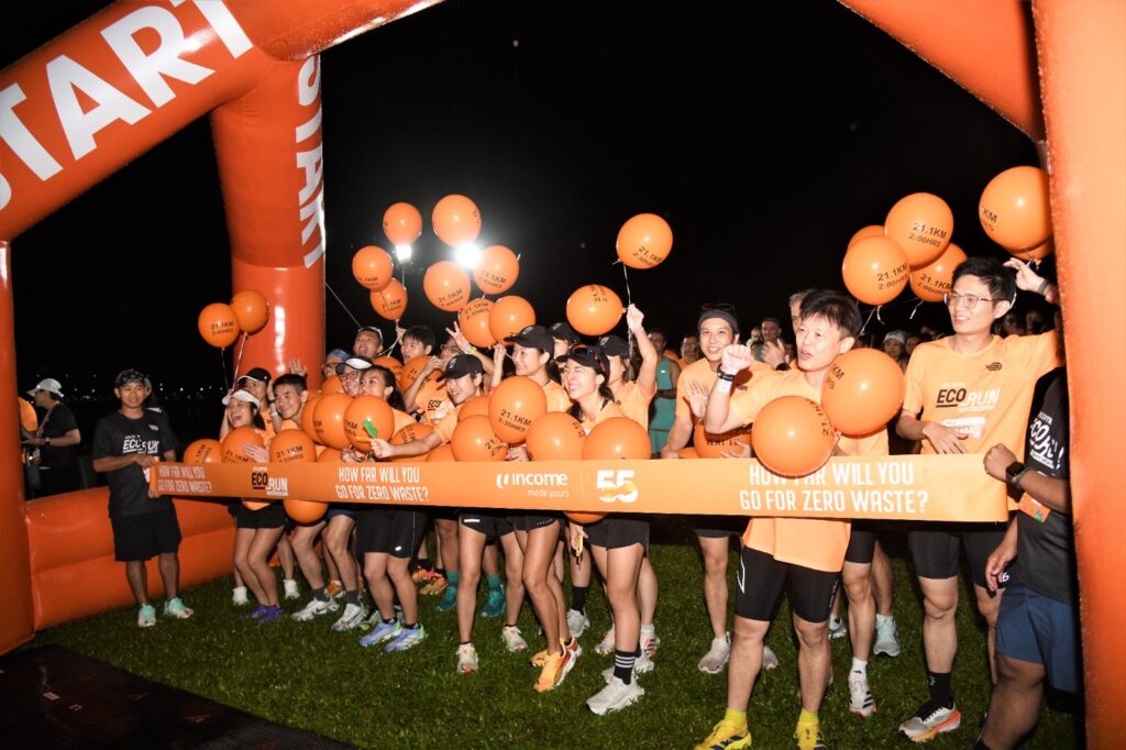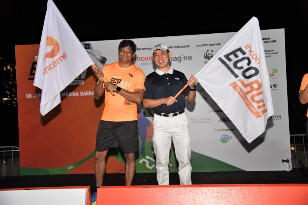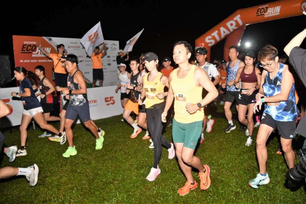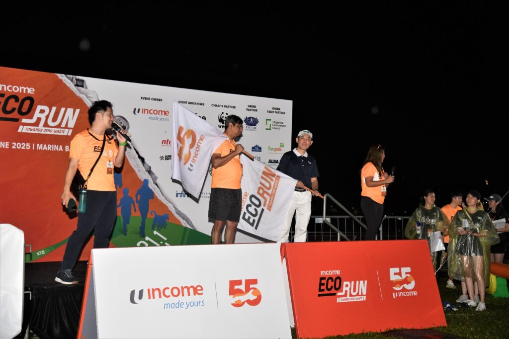 Despite heavy rain and lightning in the wee hours of this morning, the Income Eco Run took place with 5,500 runners running for a zero waste and sustainable lifestyle. Income Insurance pledged $1 to every kilometre clocked and a total of $70,000 was raised to support green initiatives.